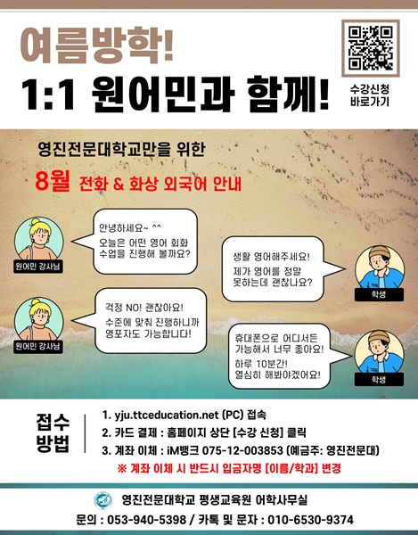 [평생교육원] 여름방학 1:1원어민과 함께!