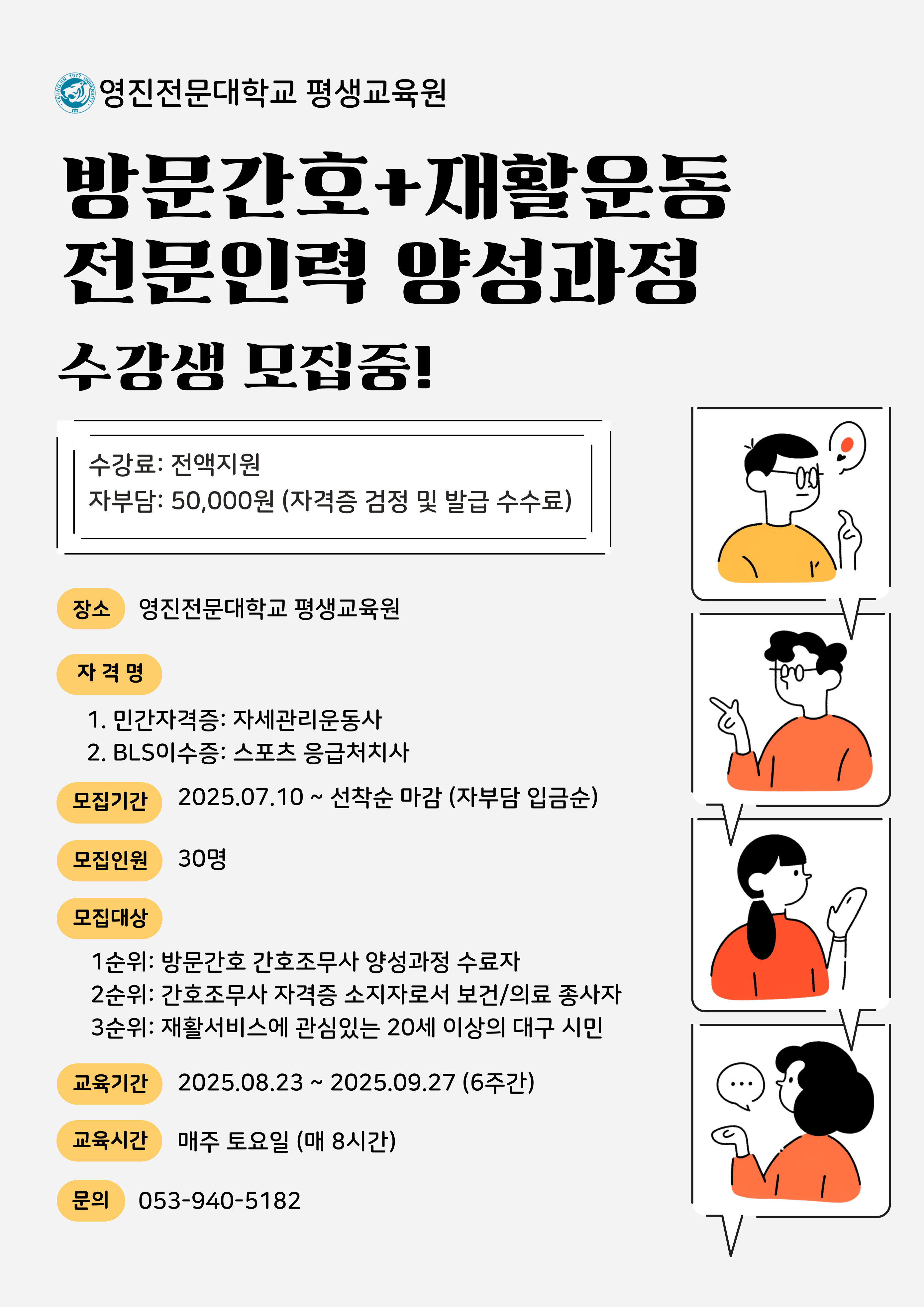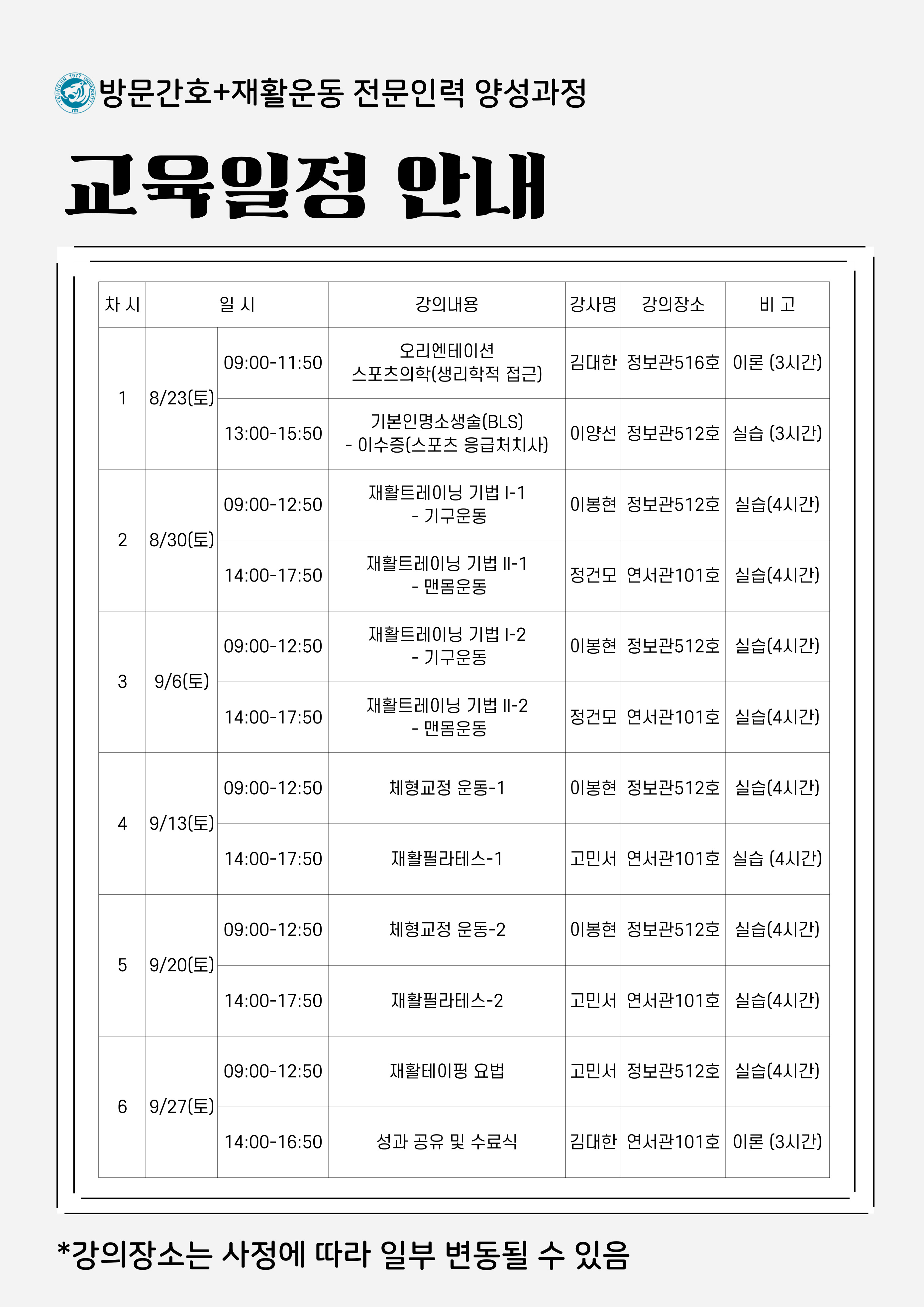 » 방문간호+재활운동 전문인력 양성과정 수강생 모집(접수마감) file 평생교육원 2025.07.10